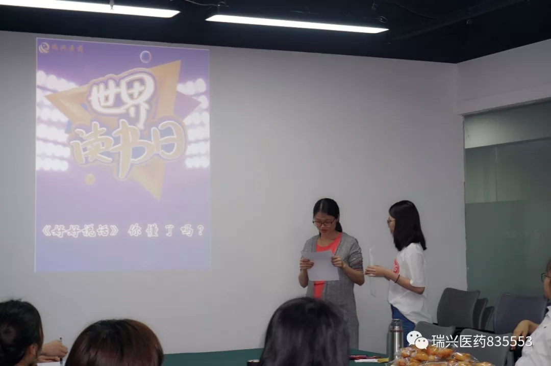 一本好書像一艘船,帶領(lǐng)我們從狹隘的地方,駛向生活無限廣闊的海洋。4月22日,瑞興醫(yī)藥的小伙伴們緊緊圍繞著《好好說話》這艘船上的知識開展了“2019年世界讀書日”系列活動報道。