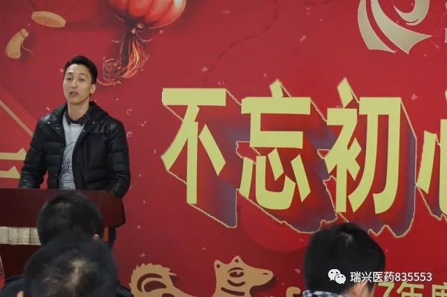 隨后,黃凌云董事長發(fā)表了重要講話,首先對大家過去一年付出的辛勞表示感謝,對大家過去一年取得的成績表示肯定與贊揚。并重點分享了公司年度資本運作的成果。同時對公司未來產(chǎn)品引進(jìn)方向進(jìn)行了規(guī)劃。并提出了瑞興醫(yī)藥“百年發(fā)展計劃”的戰(zhàn)略目標(biāo),還引用習(xí)大大的新春寄語的一句話:“幸福是奮斗出來的”鼓勵員工一起奮斗,再創(chuàng)輝煌!聽完黃總的發(fā)言,全體員工熱血沸騰,士氣十足,相信必能在2018年共同創(chuàng)造出更大的輝煌!